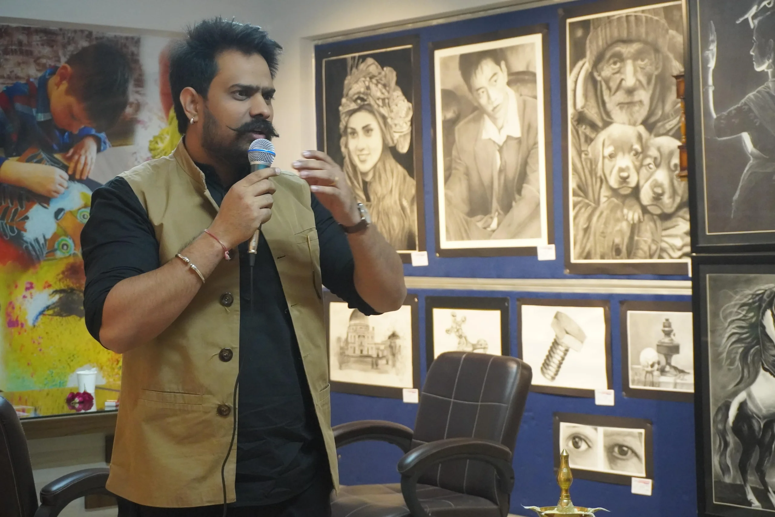The Delhi Fine Art Academy’s Annual Art Exhibition 2025 was a vibrant showcase of creativity, bringing together an inspiring blend of various types of artworks. Held from 14th to 17th November 2025 in the academy itself, the event kicked off with a ceremonial opening by the respected artist Mr. Kishan Kundara, popularly known as Pencilwala, sharing his artistic journey, valuable tips, and heartfelt encouragement with the students. The exhibition promoted artistic expression, meaningful dialogue through visual art, and served as a proud platform for the students to present their growth, gain recognition, and engage with real audiences; meanwhile the visitors enjoyed an immersive experience that deepened their appreciation for the emerging talent and evolving art landscape of India.